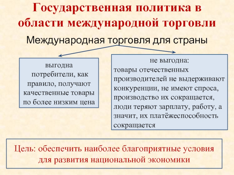 Цель: обеспечить наиболее благоприятные условия для развития национальной экономики