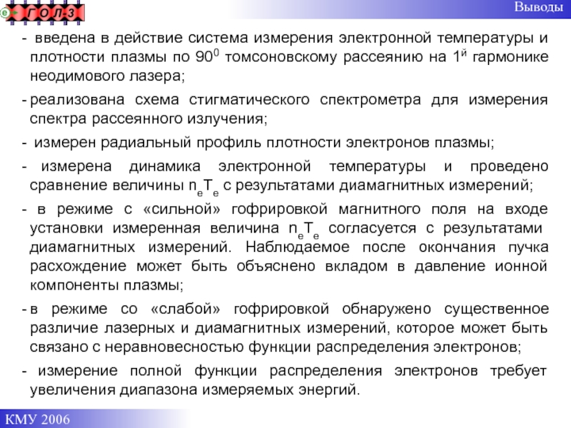 в разных режимах работы ГОЛ-3