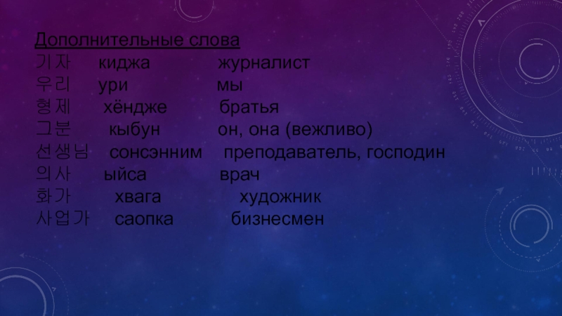 числам и падежам. Образование множественного числа очень простое – достаточно к словарной форме слова добавить окончание –들 (тыль/дыль). Например: 사람 (сарам) "человек" – 사람들(сарамдыль) "люди"; 개 (кэ) "собака" – 개들 (кэдыль) "собаки".