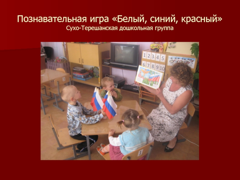 Слайд 5Познавательная игра «Белый, синий, красный» Сухо-Терешанская дошкольная группа