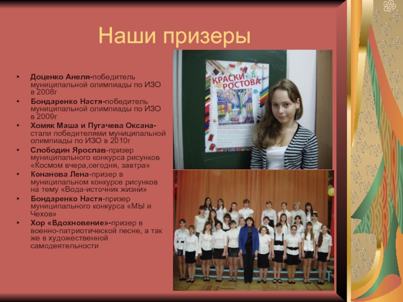 Хомяк Маша и Пугачева Оксана-стали победителями муниципальной олимпиады по ИЗО в 2010г