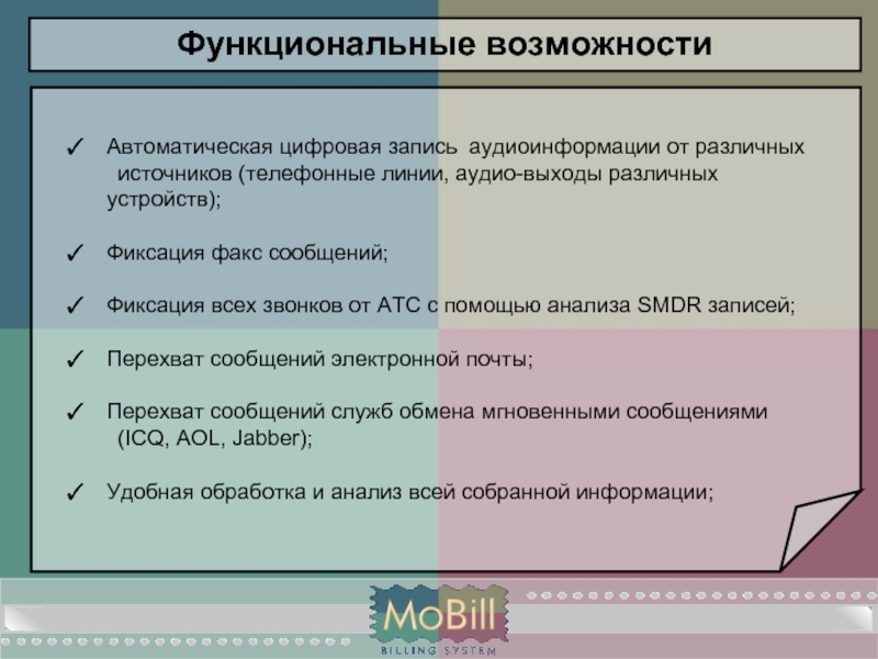 Слайд 2MoBill – STS.Intercept Автоматизированная система фиксации переговоров