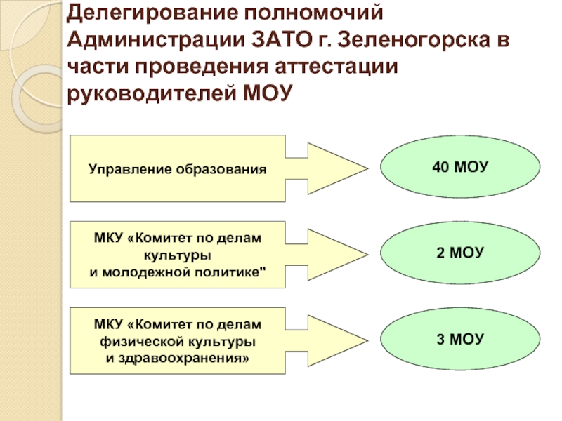 Слайд 3Делегирование полномочий Администрации ЗАТО г. Зеленогорска в части проведения аттестации руководителей