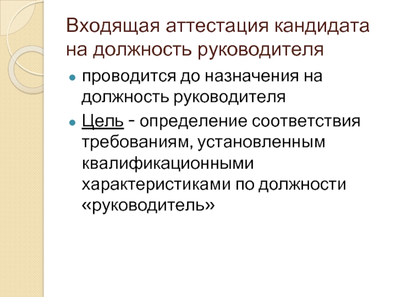 Слайд 5Входящая аттестация кандидата на должность руководителя