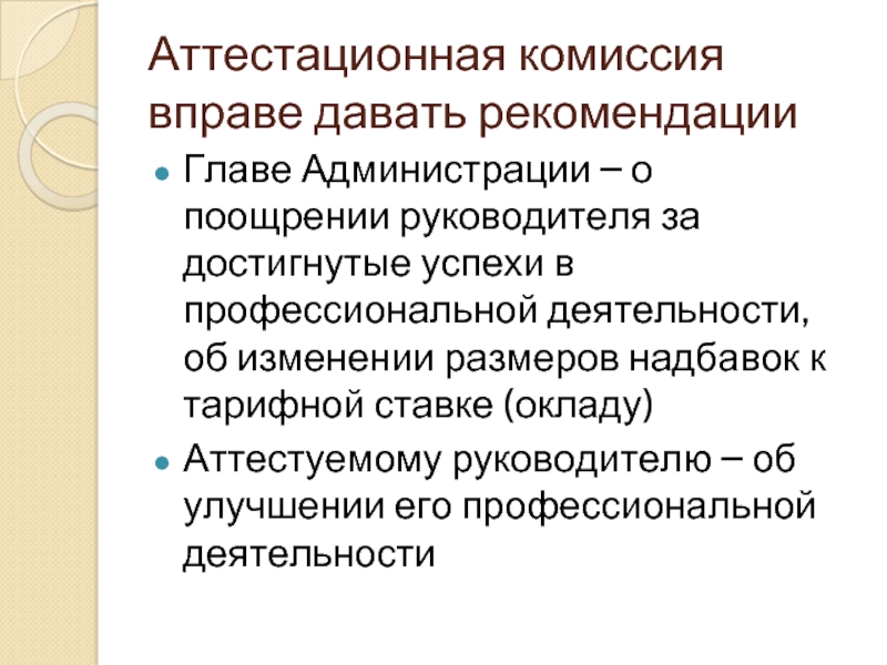 Слайд 12Аттестационная комиссия вправе давать рекомендации