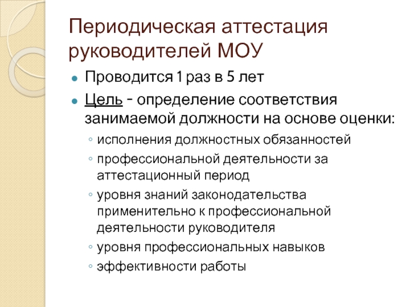 Цель - определение соответствия требованиям, установленным квалификационными характеристиками по должности «руководитель»