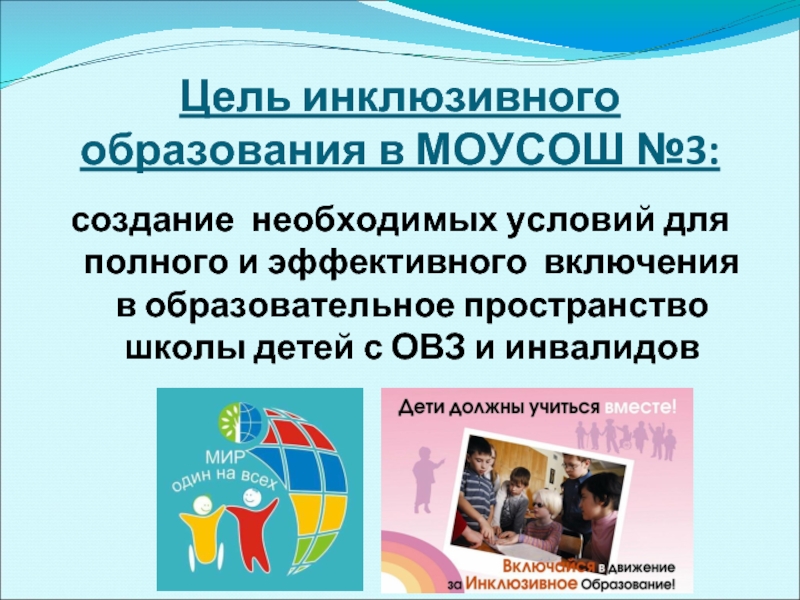 Слайд 14Цель инклюзивного образования в МОУСОШ №3: