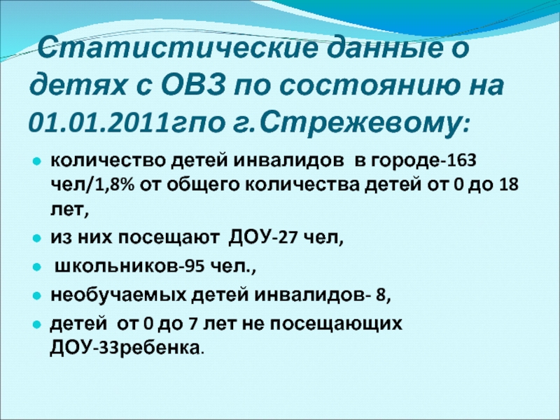 Статистические данные о детях с ОВЗ по состоянию на 01.01.2011гпо