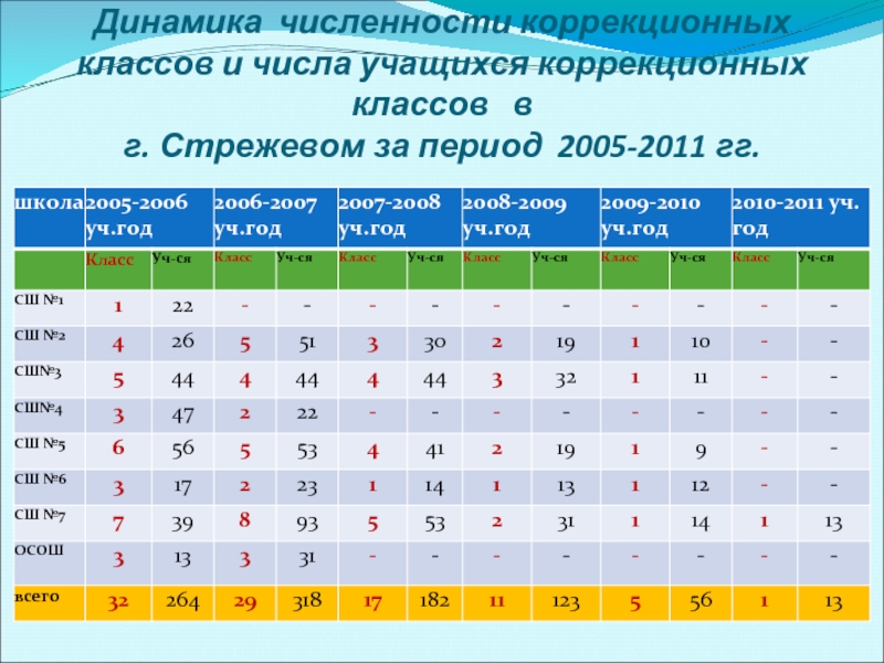 Слайд 5Динамика численности коррекционных классов и числа учащихся коррекционных классов в