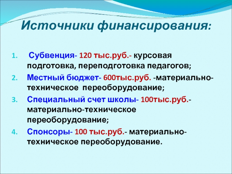 Спонсоры- 100 тыс.руб.- материально-техническое переоборудование.