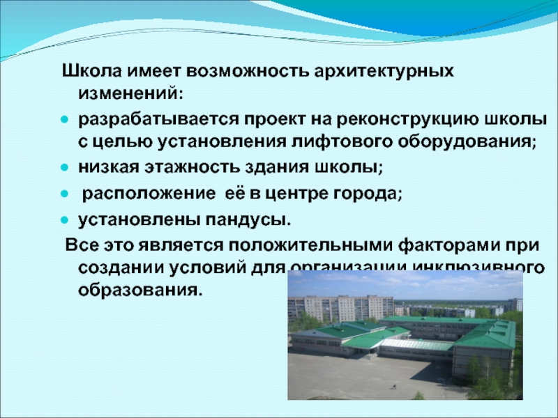Слайд 11Школа имеет возможность архитектурных изменений:
