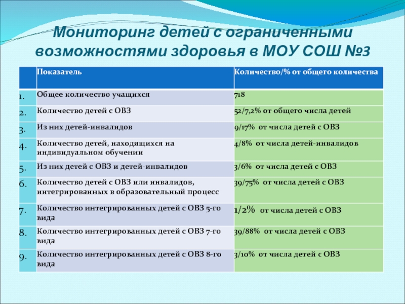 Слайд 9Мониторинг детей с ограниченными возможностями здоровья в МОУ СОШ №3