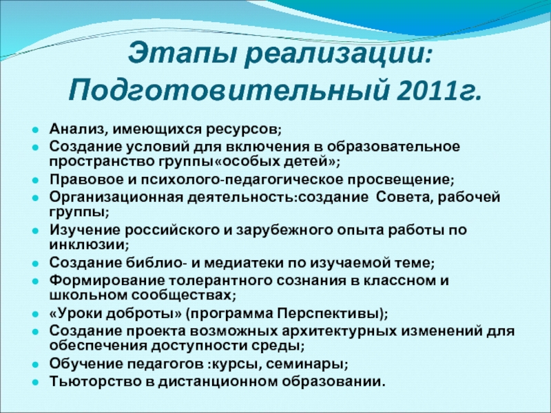 Изучение российского и зарубежного опыта работы по инклюзии;