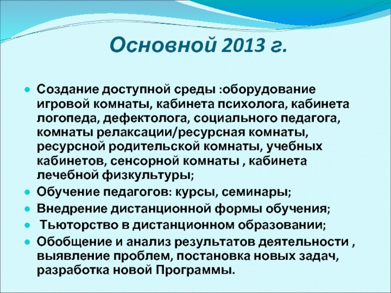 Создание доступной среды :оборудование игровой комнаты, кабинета психолога,