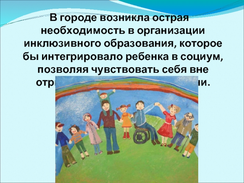 Слайд 6В городе возникла острая необходимость в организации инклюзивного образования, которое бы