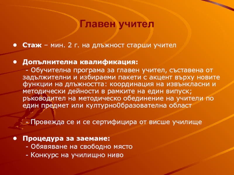 Слайд 10Главен учител
