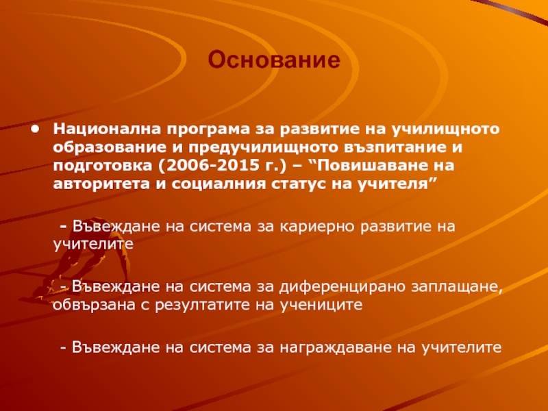 подготовка (2006-2015 г.) – “Повишаване на авторитета и социалния статус на учителя”
