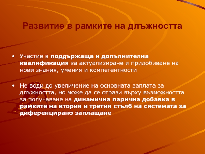 Слайд 16Развитие в рамките на длъжността