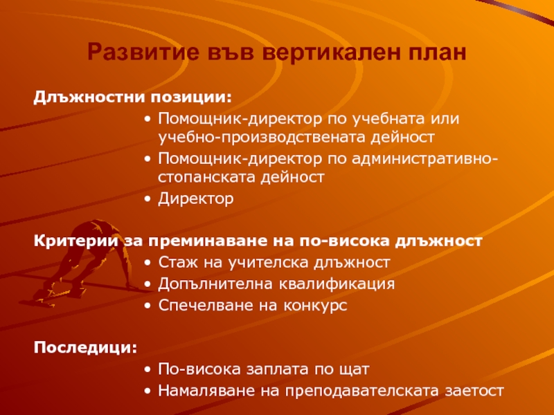 Развитие във вертикален план – заемане на административни длъжности в системата на народната просвета
