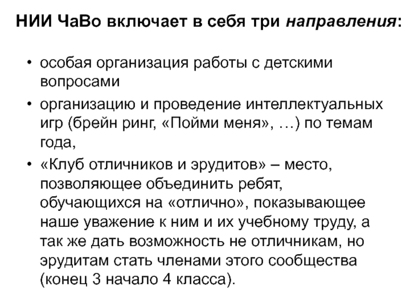 Слайд 12НИИ ЧаВо включает в себя три направления: