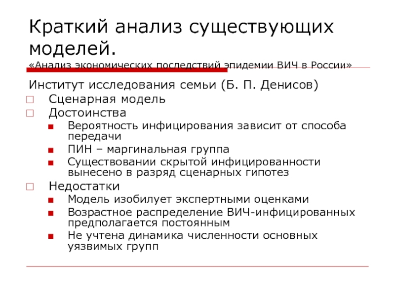 На эпидемиологический и экономический прогноз распространения ВИЧ-инфекции влияет множество социо-биологических свойств индивида.