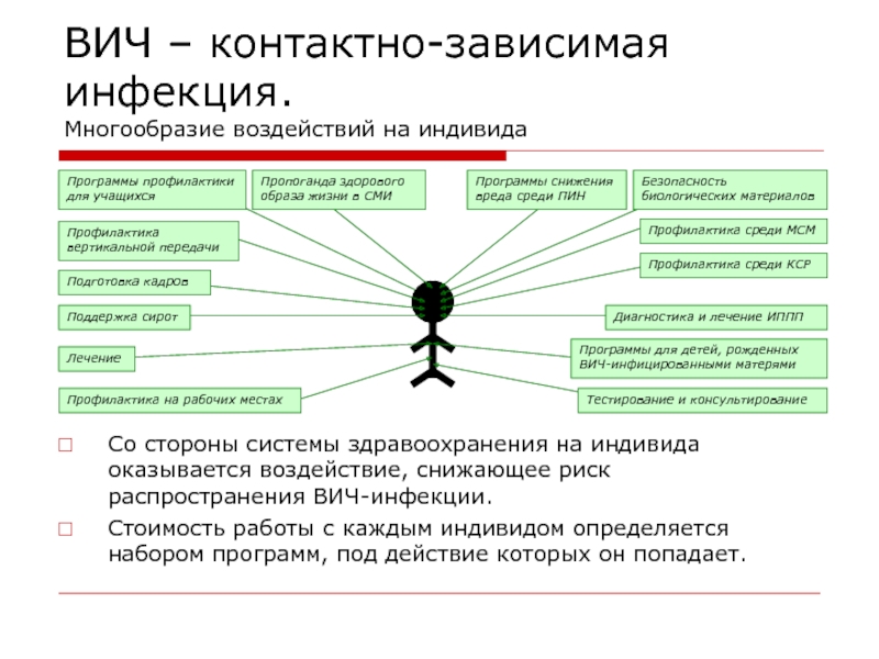 Со стороны системы здравоохранения на индивида оказывается воздействие, снижающее риск распространения ВИЧ-инфекции.