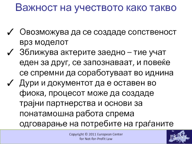 Дури и документот да е оставен во фиока, процесот може да создаде трајни партнерства и основи за понатамошна работа спрема одговарање на потребите на граѓаните