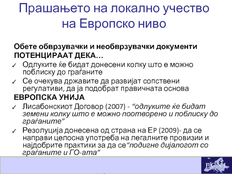 Додаден Протокол на Чартерот (2008): право на секој да учествува во локалните случувања, одговорност на државите да воспостават легална основа