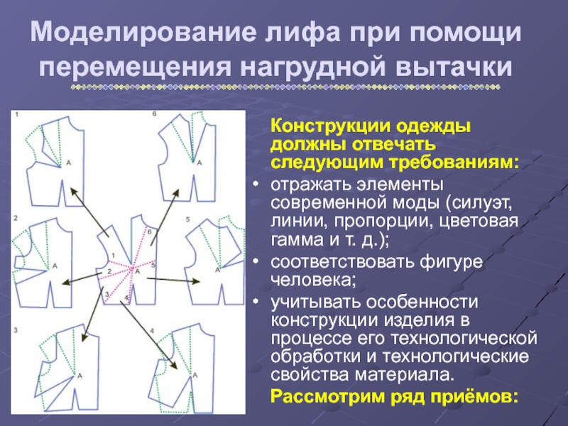 Перемещение вытачки с помощью измерений и графического построения чертежа