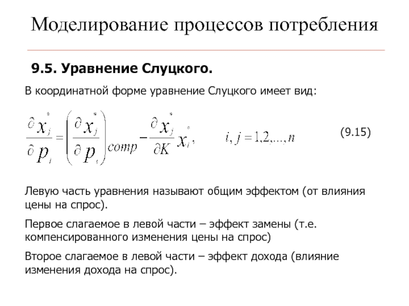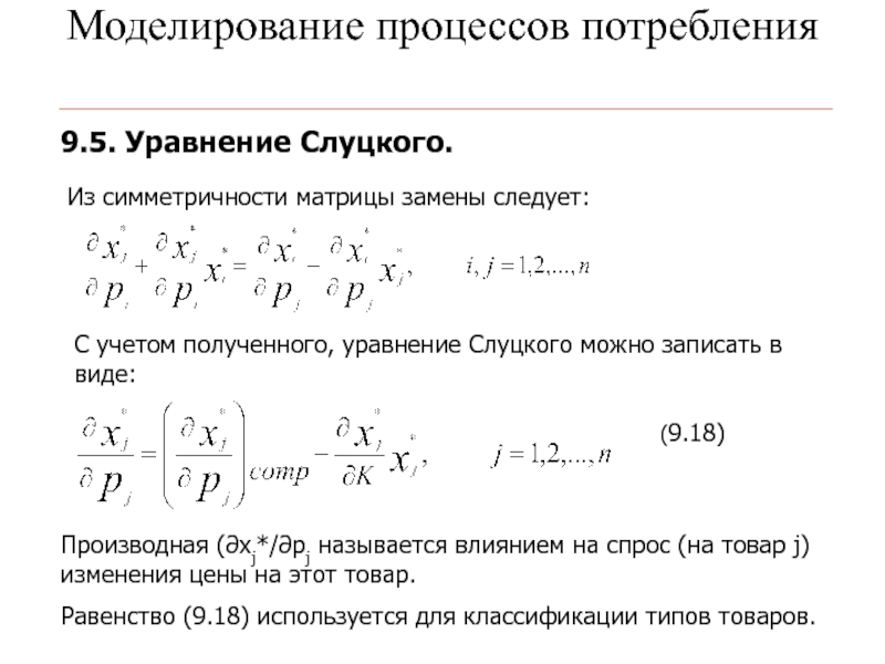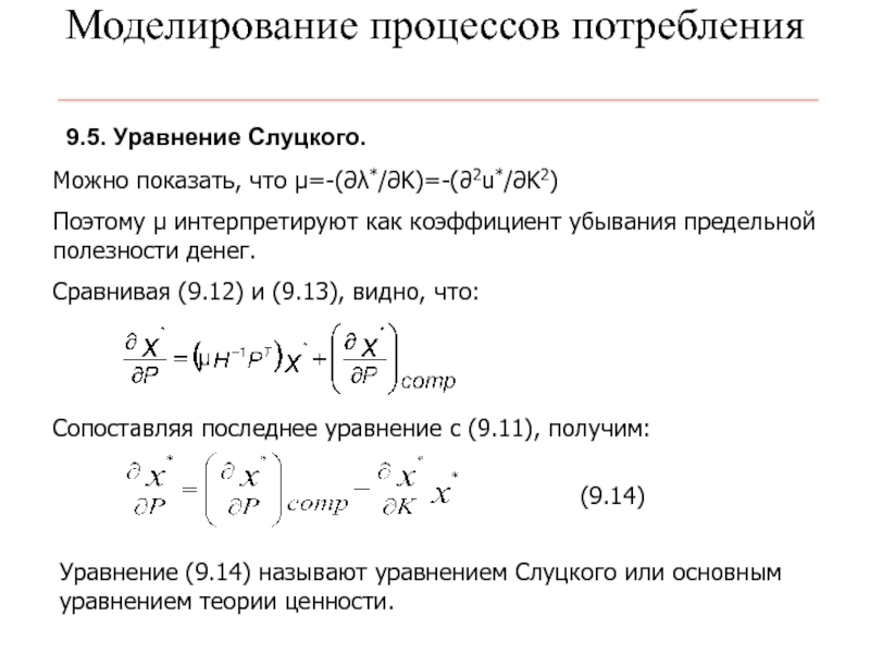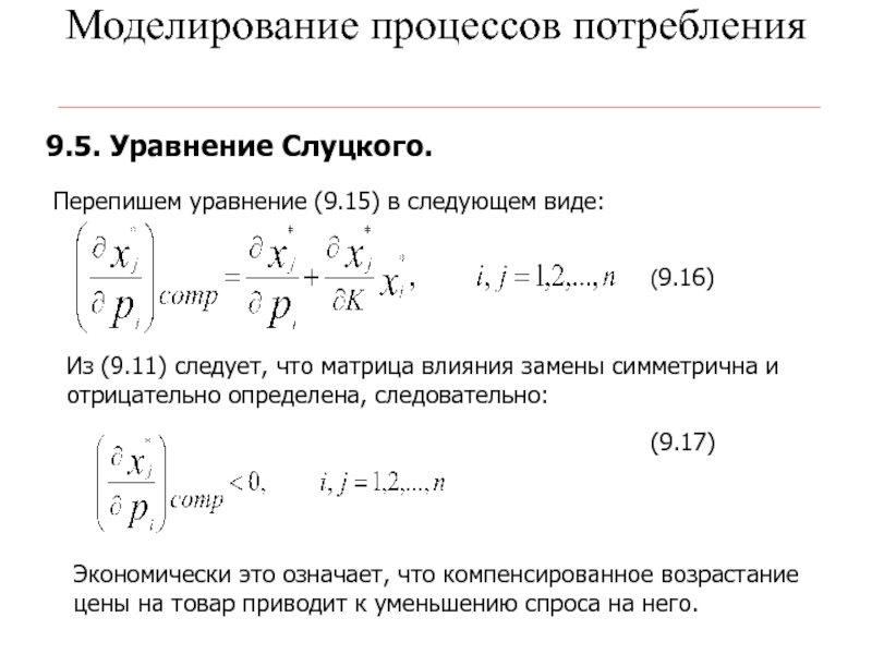 Уравнение (9.14) называют уравнением Слуцкого или основным уравнением теории ценности.