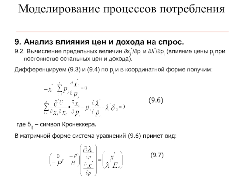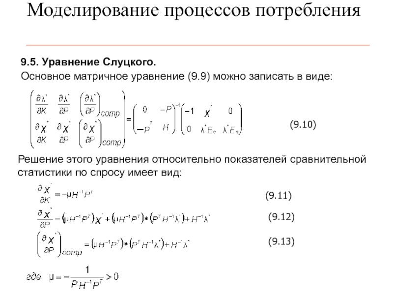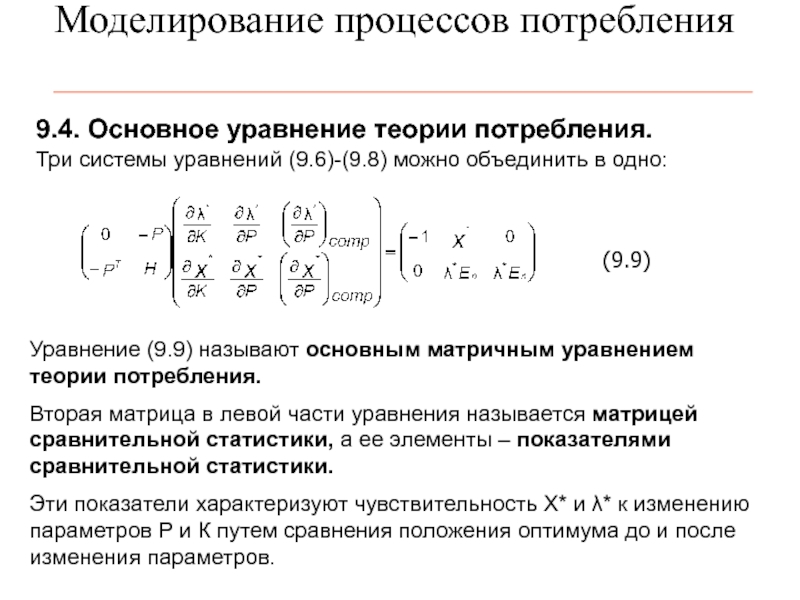 Уравнение (9.9) называют основным матричным уравнением теории потребления.