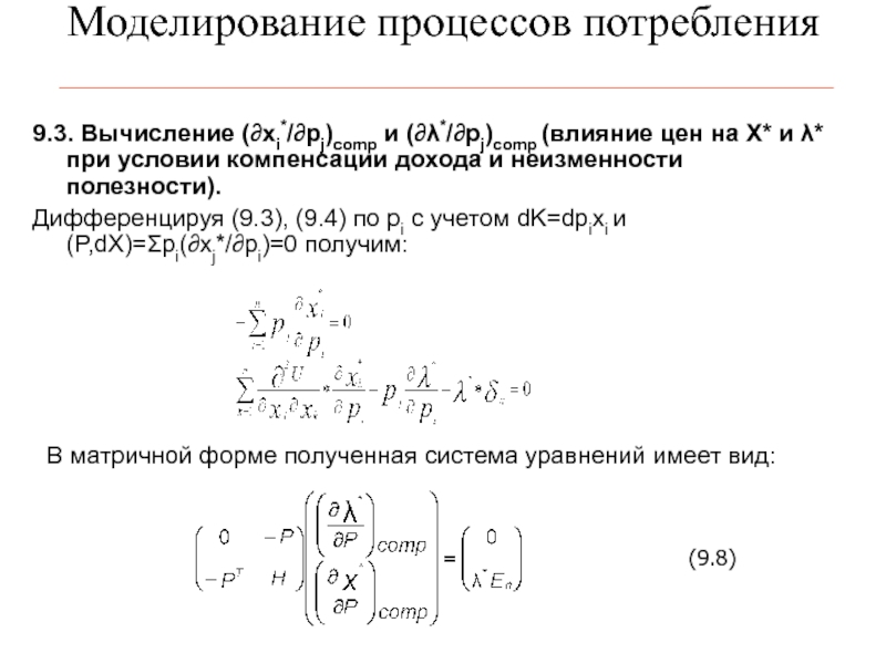 9.3. Вычисление (∂xi*/∂pj)comp и (∂λ*/∂pj)comp (влияние цен на Х*