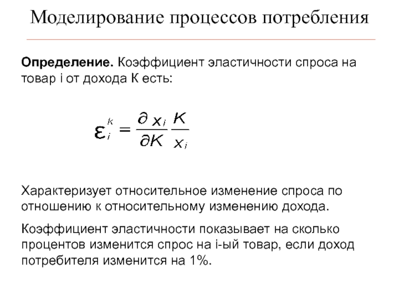 Определение. Коэффициент эластичности спроса на товар i от дохода