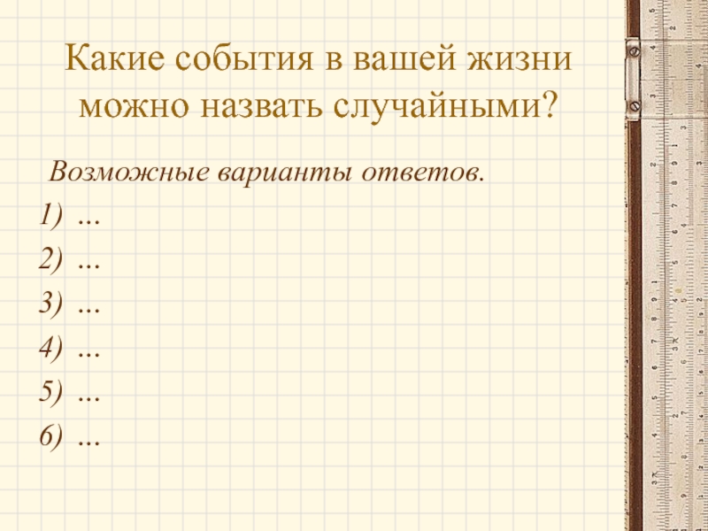 Слайд 2Какие события в вашей жизни можно назвать случайными?