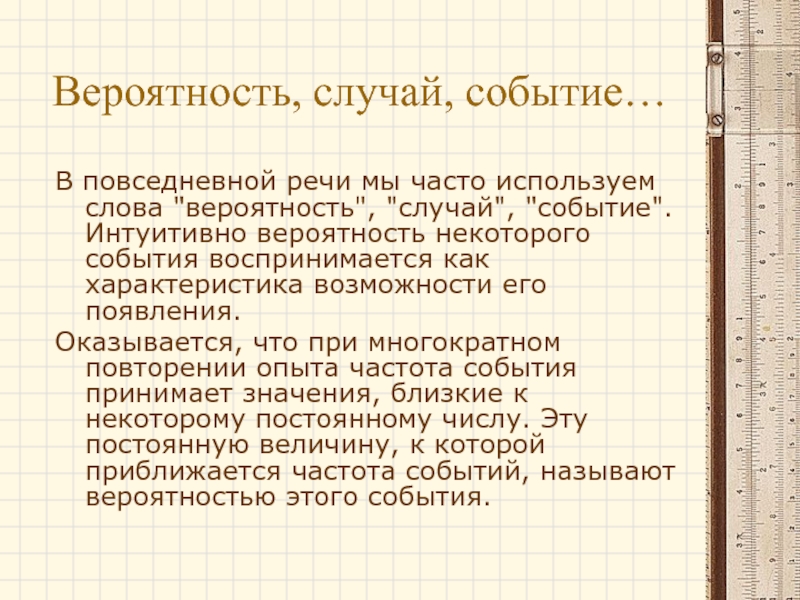 В повседневной речи мы часто используем слова "вероятность", "случай",