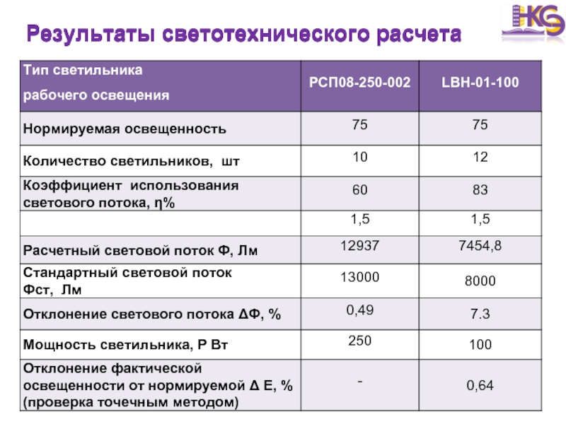 2 произвести светотехнический расчет методом коэффициента использования светового потока для светильников с газоразрядными лампами высокого давления и светодиодных светильников