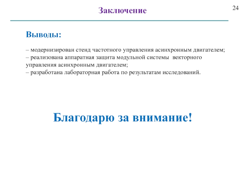 – реализация аппаратной защиты на стенде исследований модульной системы векторного управления асинхронным двигателем;