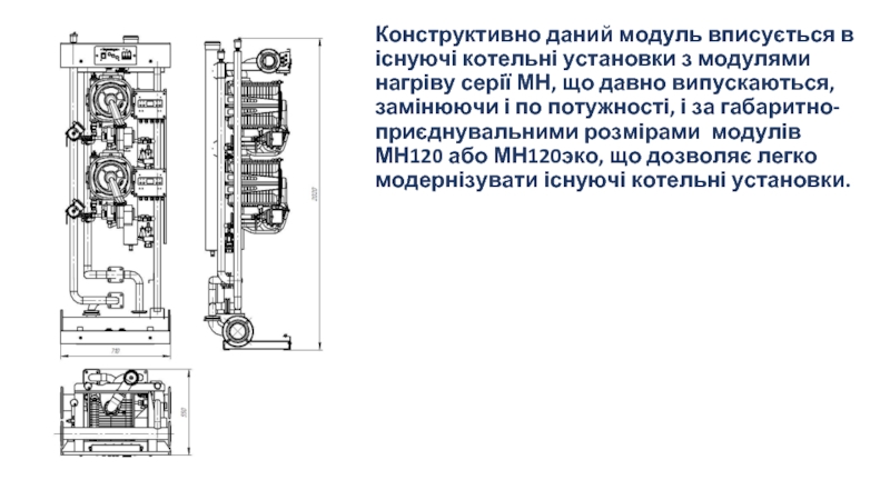 Слайд 4Конструктивно даний модуль вписується в існуючі котельні установки з модулями нагріву