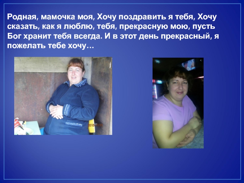 Слайд 3Родная, мамочка моя, Хочу поздравить я тебя, Хочу сказать, как я