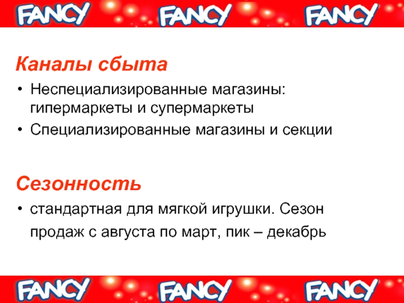 мягкой игрушки. Сезон продаж с августа по март, пик – декабрь