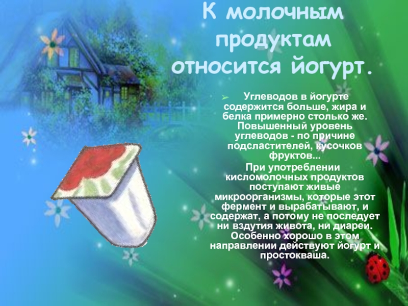 Молочнокислые продукты способствуют развитию в кишечнике полезных для человека бактерий и подавляют вредные, выделяющие яды.