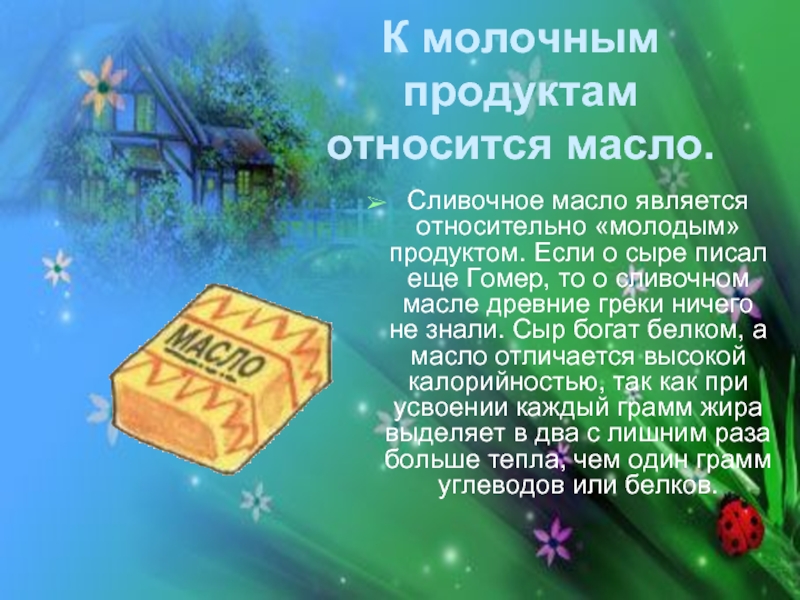 К молочным продуктам относится масло.