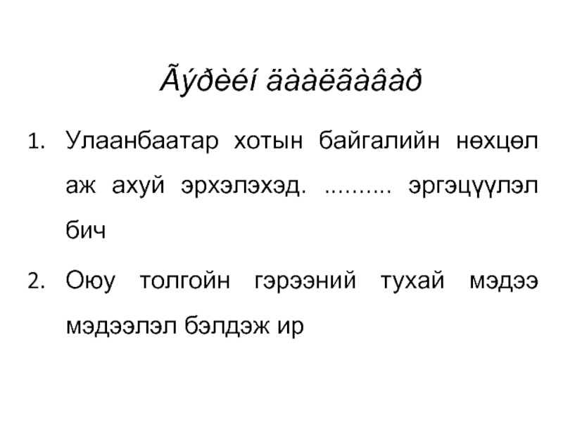Слайд 20Õè÷ýýëä èäýâõèòýé îðîëöñîíä áàÿðëàëàà.