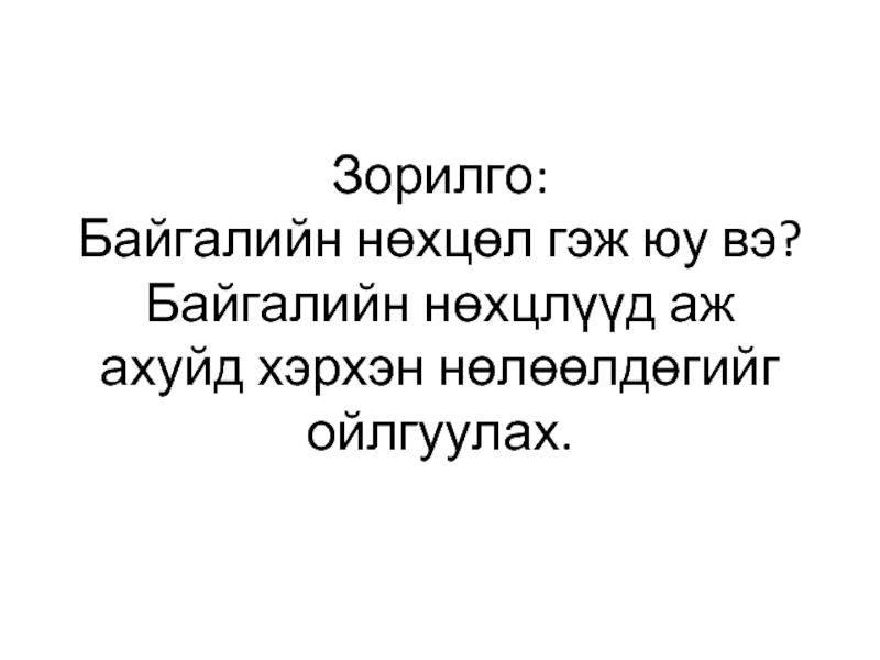 Слайд 1Монгол улсын байгалийн нөхцлийн аж ахуйд үзүүлэх нөлөө