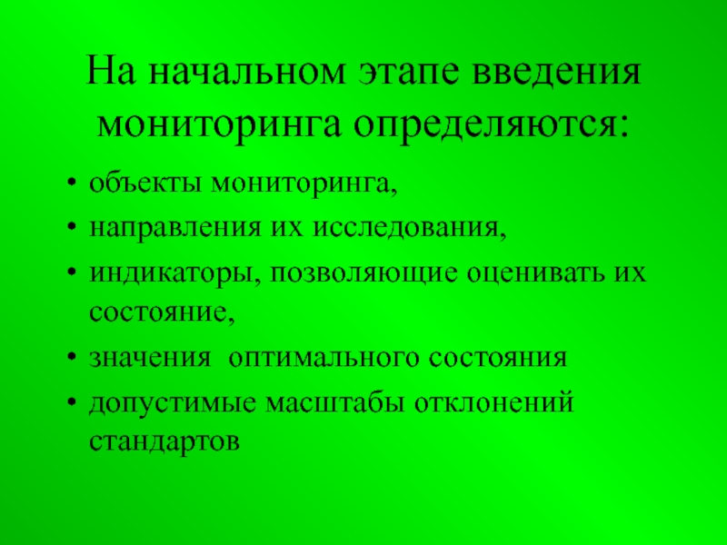 Слайд 25На начальном этапе введения мониторинга определяются: