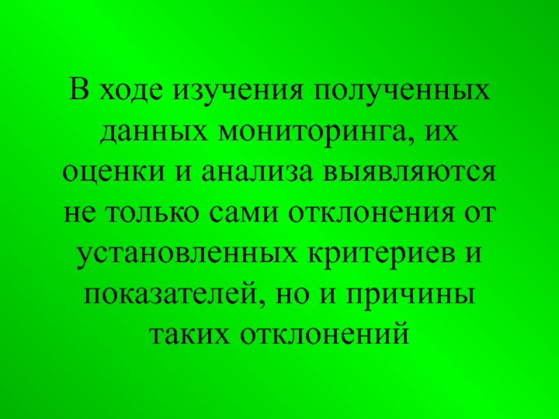 Слайд 56В ходе изучения полученных данных мониторинга, их оценки и анализа выявляются