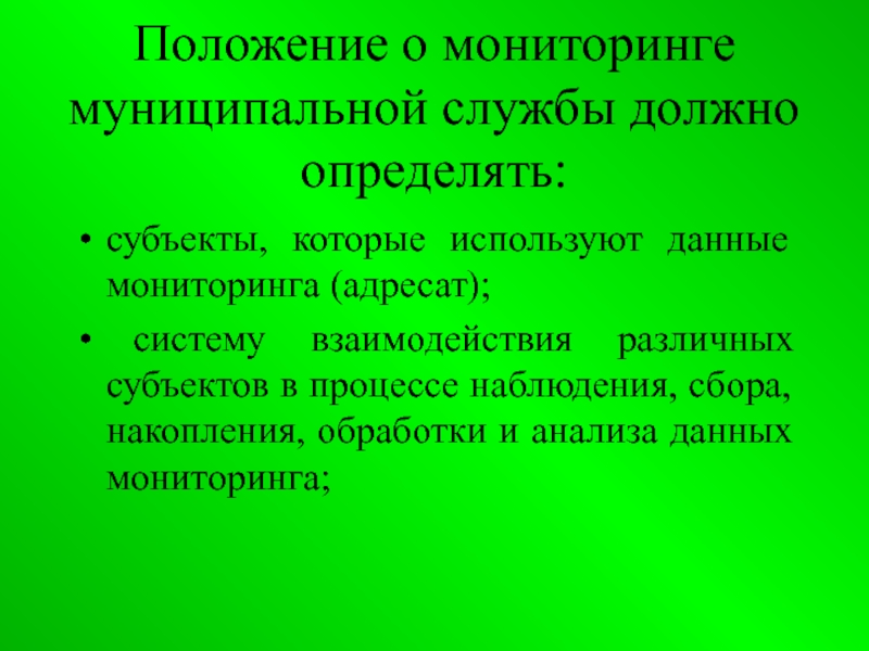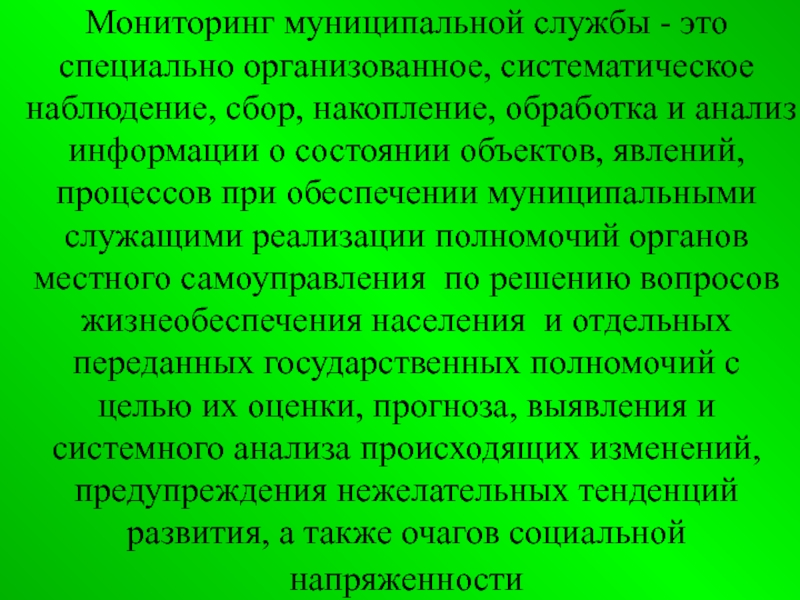 Слайд 8Мониторинг муниципальной службы - это специально организованное, систематическое наблюдение, сбор, накопление,