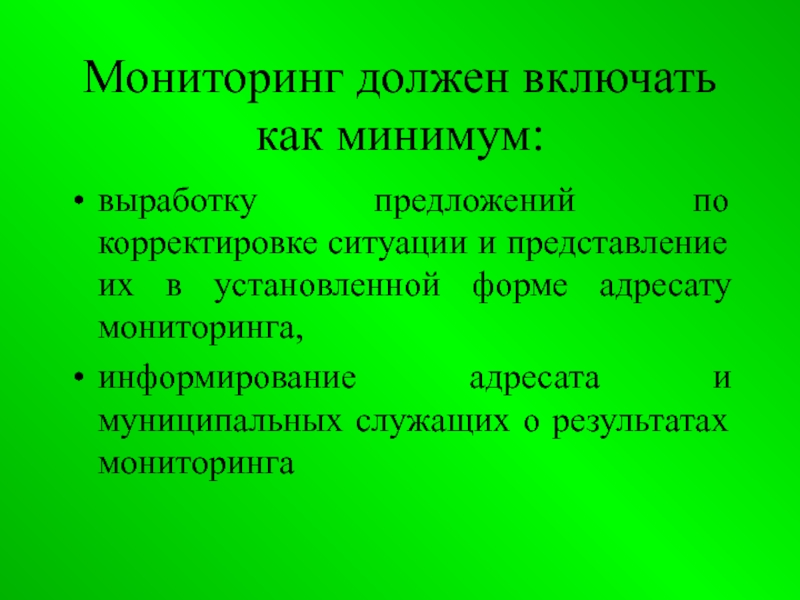Слайд 50По результатам мониторинга должен составляться доклад или иной документ, отражающий результаты