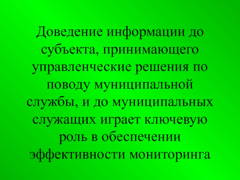 Слайд 60Доведение информации до субъекта, принимающего управленческие решения по поводу муниципальной службы,