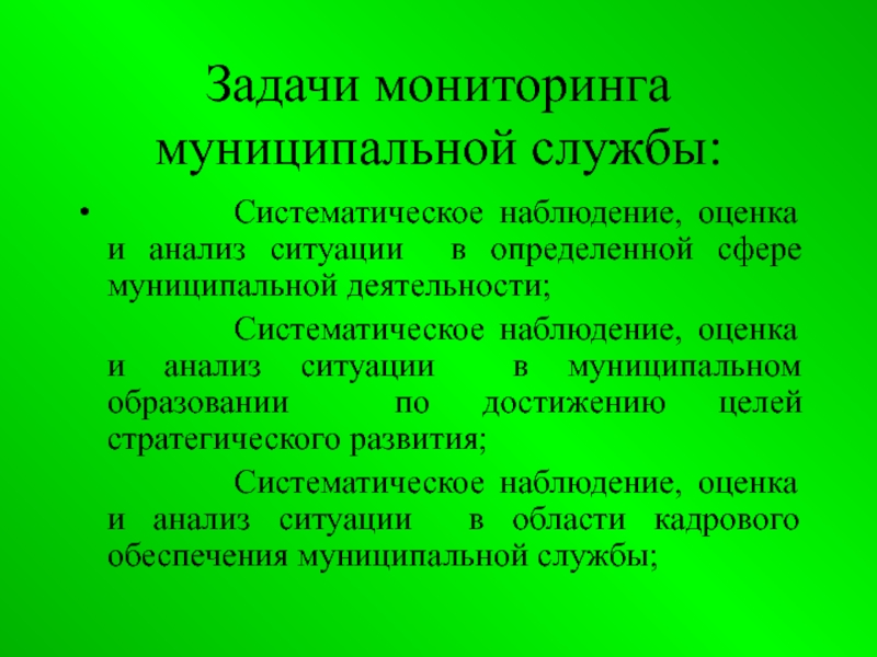Систематическое наблюдение, оценка и анализ ситуации в области кадрового обеспечения муниципальной службы;